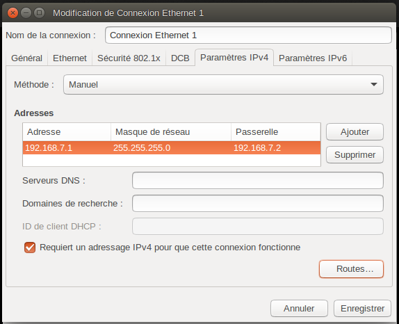 Pour pouvoir communiquer avec le Raspberry Pi, nous devrons commencer par forcer une adresse IP côté PC. Pour cela nous pouvons utiliser le Network Manager :