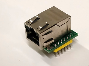 Le circuit en question est construit autour d’un contrôleur Wiznet w5500 relativement courant. Il existe plusieurs versions de ce module, disponibles auprès de nombreux fournisseurs. Il est adapté pour fonctionner avec des signaux de tension 3.3V comme le Raspberry Pi ou 5V comme l’Arduino.